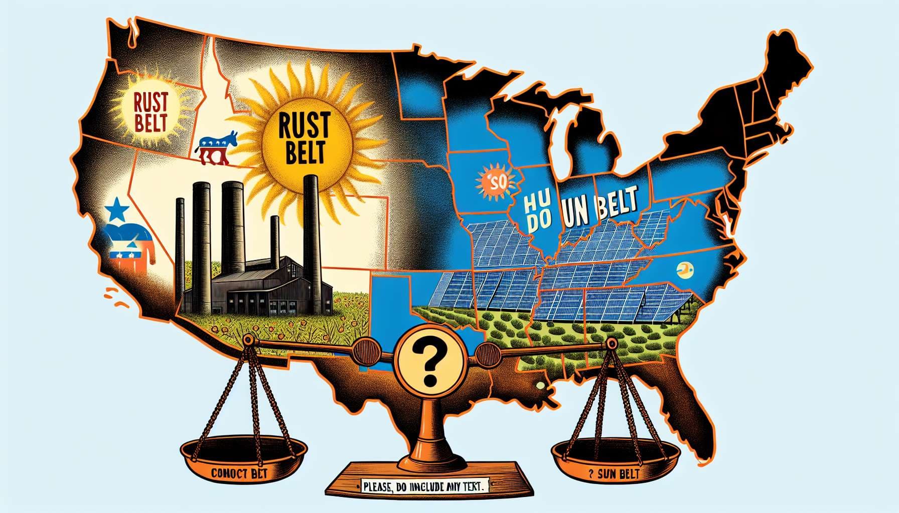 This market resolves YES if the weighted average of the Democratic nominee's vote share in the three Rust Belt tossups is larger than that in the three Sun Belt tossups. They will be weighted by the number of electoral votes from each state.