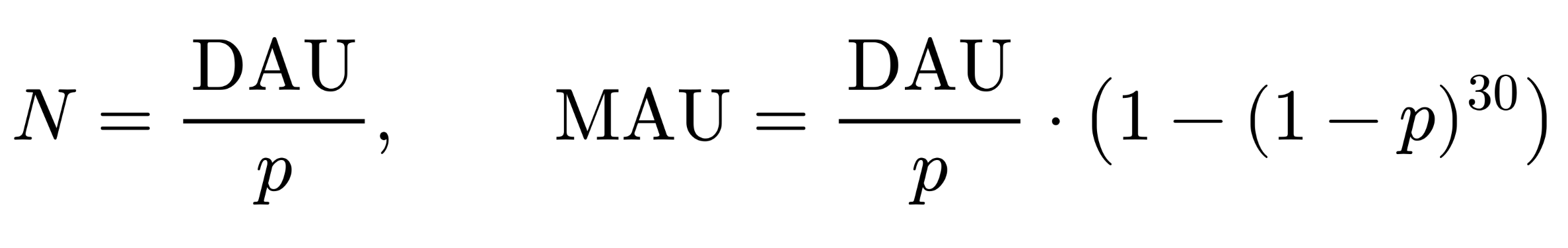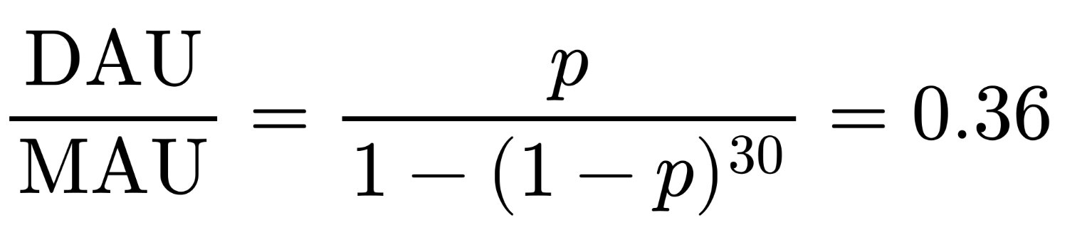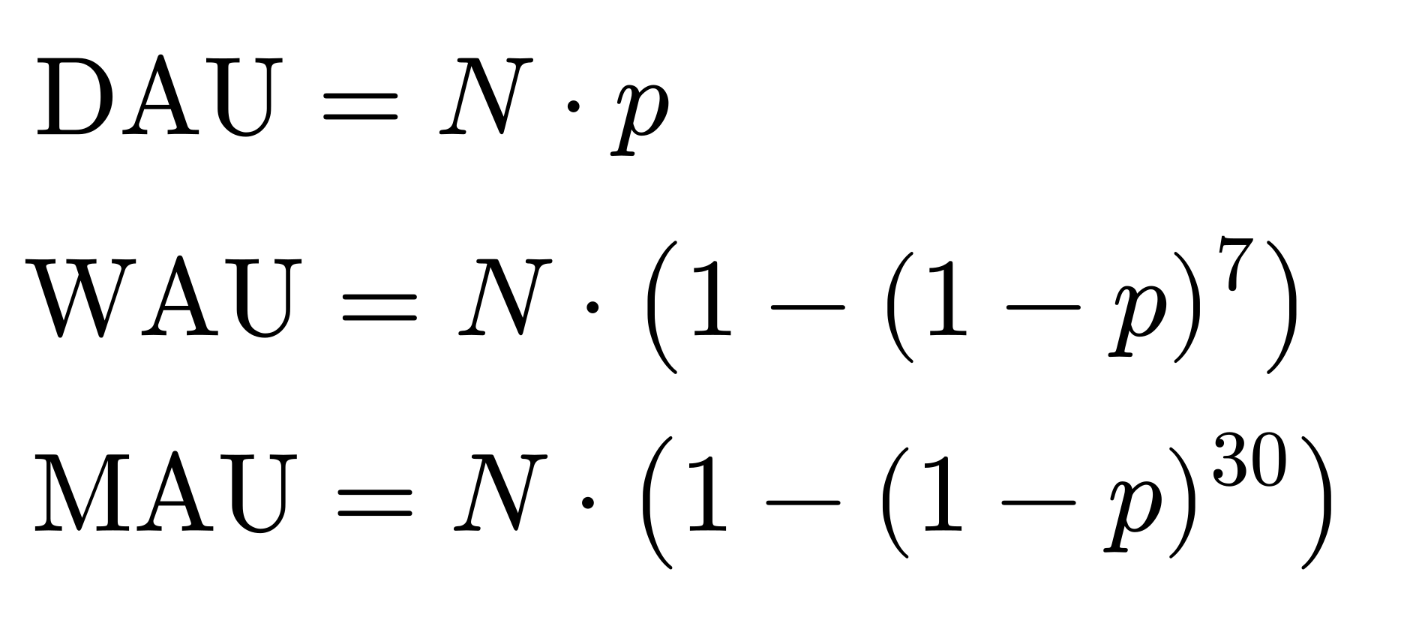 @ItsMe like if each user has a different p value, and this is written as a random variable P over the set of users, then the model averages out to DAU = N * mean(P)